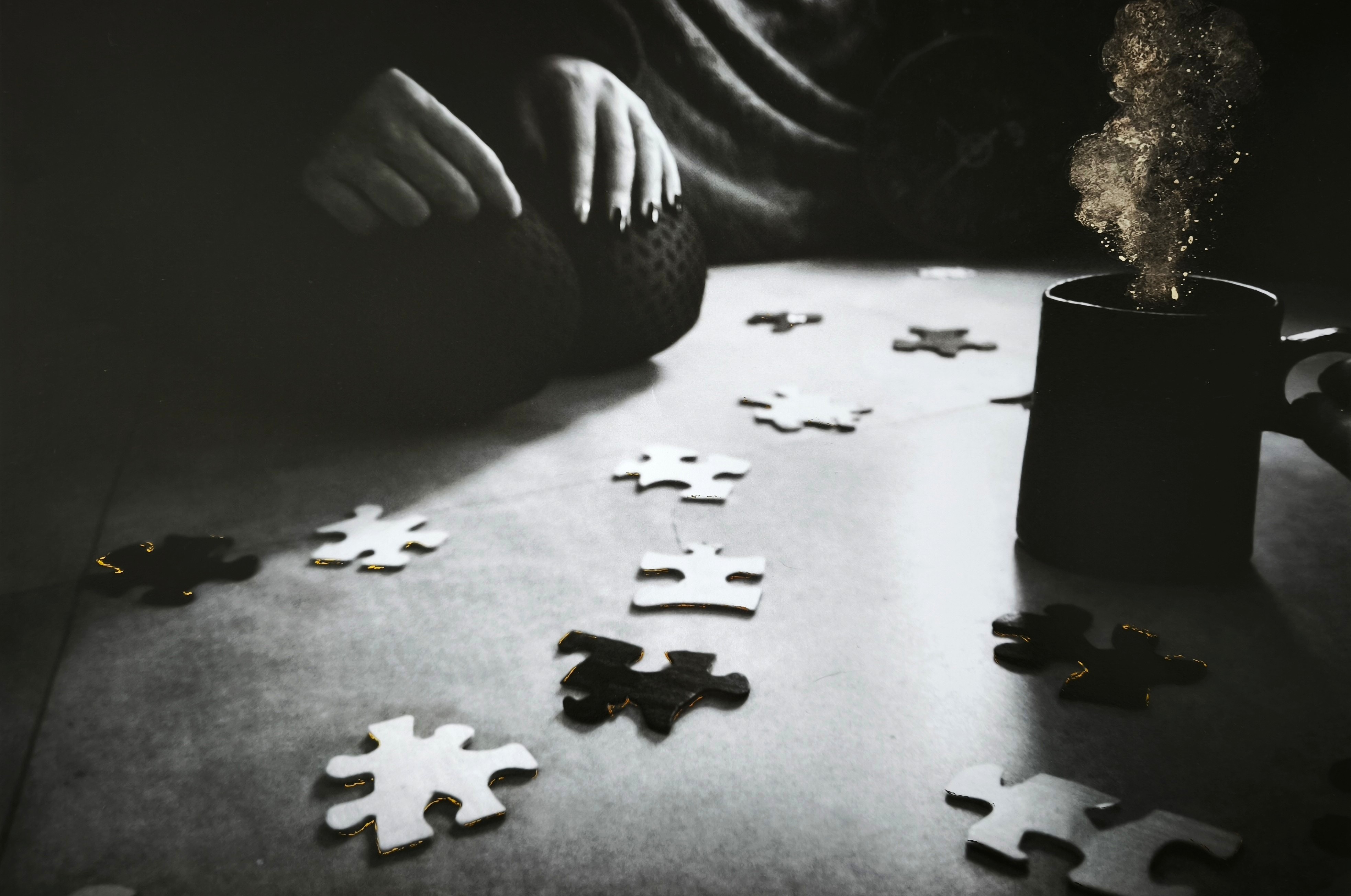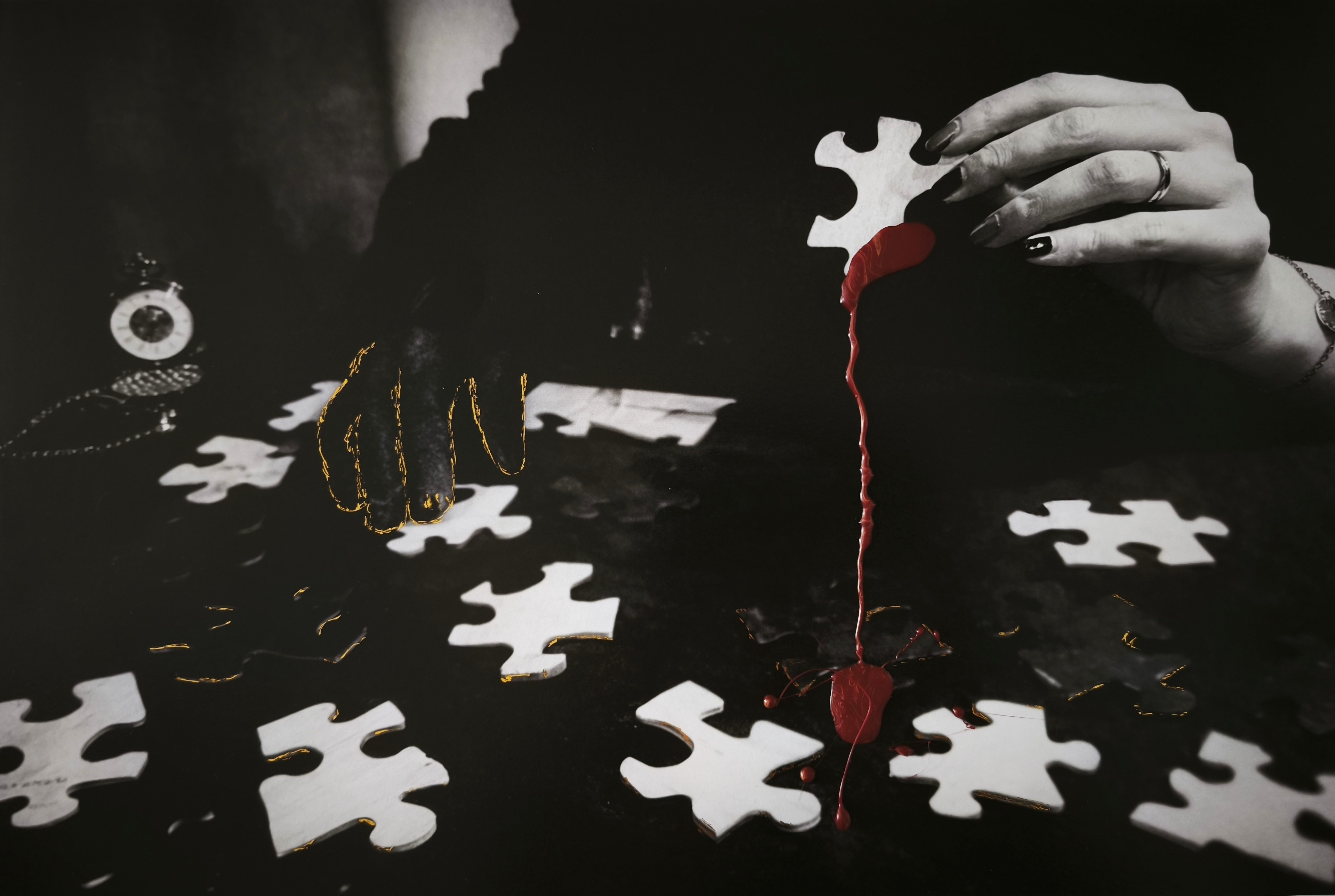 Les puzzles, les engrenages, les fils, les matières versées,